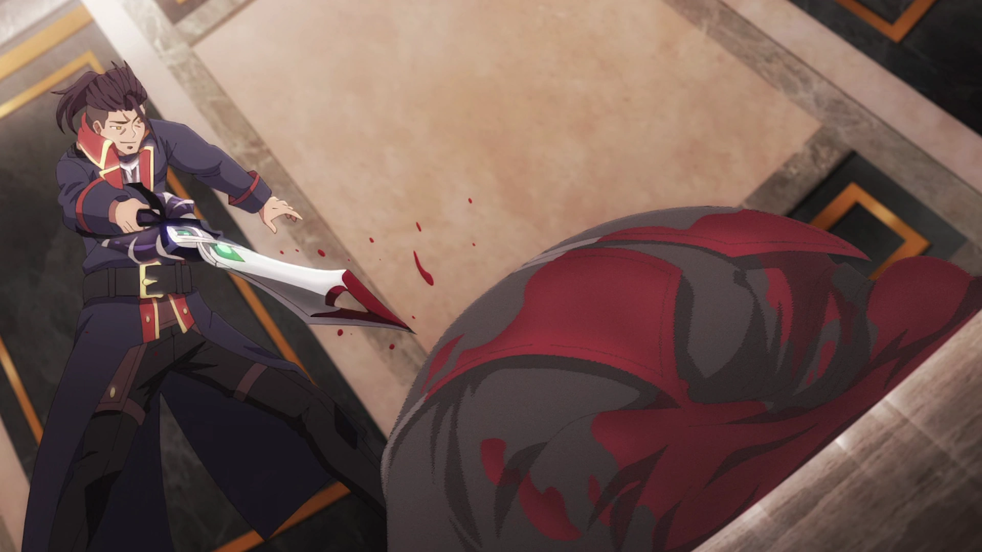 Gydrest, the Death Strike Sword[](死突剣ギードレスト, Shitotsuken Gīdoresuto) A demon sword with a blade designed strictly for piercing enemies that radiates ominous magic honed for killing sources. The sword was forged after Demon King Anos's reincarnation to kill his subordinates. Anos would be unable to use Agronemt because he had never seen the sword before.[21] Another two of Zeke's allies also carried copies of Gydrest. |