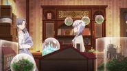 Melissa welcomes Misha and Anos when they enter the shop together for their outing. She is surprised that Anos doesn't know what a magic model is, so she brings him to the workshop to see for himself. After learning what they were from Misha, he says that he could make a masterpiece unlike any other. Hearing this, she brings him to the display area and shows him one of the top ten magic models in the world. Still unconvinced, Anos lets out another remark, outraging the legendary appraiser Demil Graha, who was inspecting the magic model. However, both Melissa and Demil are shocked when Anos creates a minuscule and detailed replica of the entire city of Dilhade on the spot without the need for a workshop.